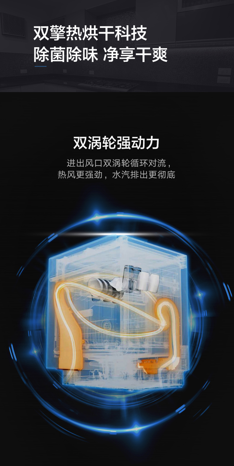 搭载双擎热烘干科技,除菌又除味;洗烘存一体,智能脏污识别,除菌率达99.99%