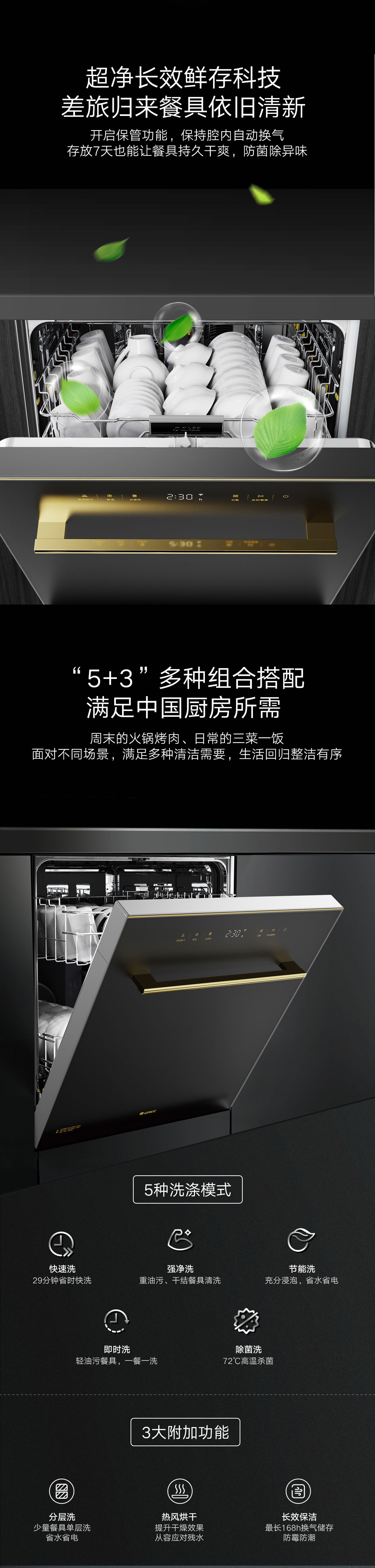 搭载瀑式增压强洗科技,36KPa洗净深层菌污,除菌率达99.99%;洗烘除存一体,存放7天也干爽