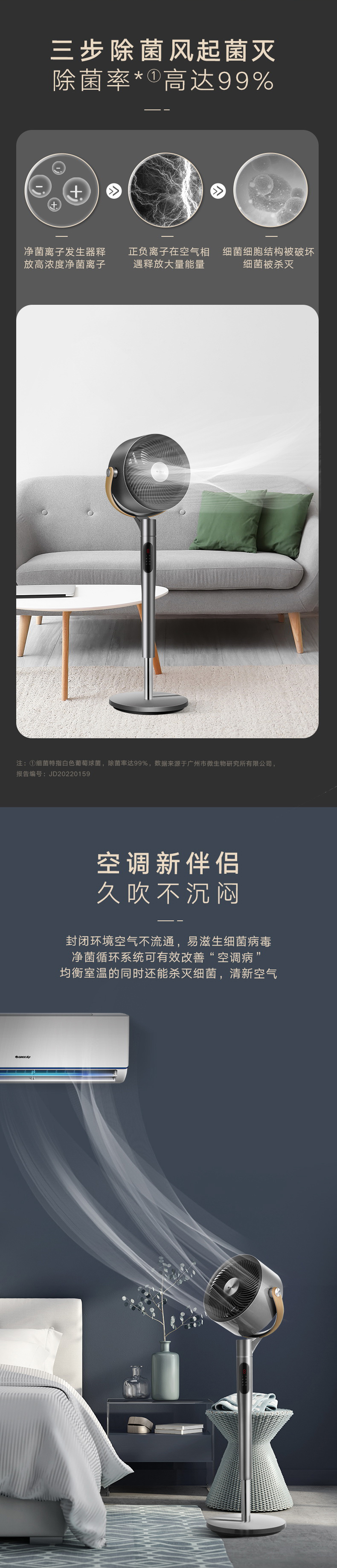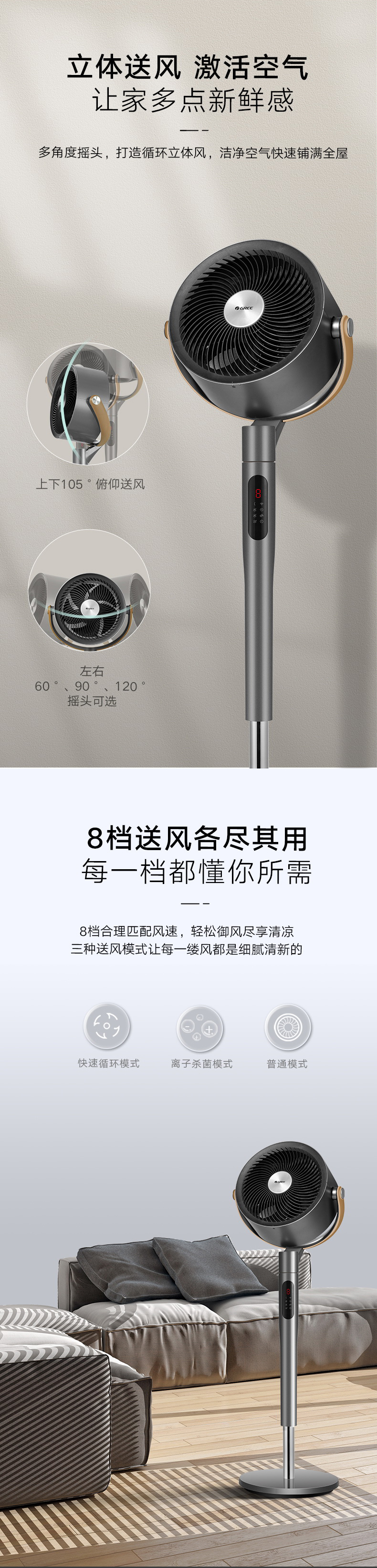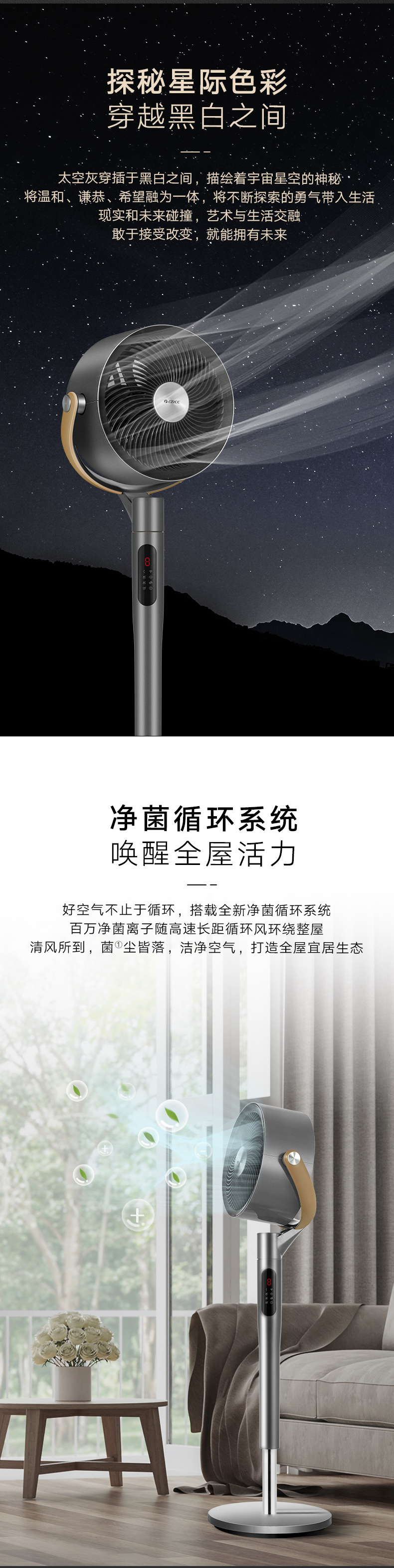 净菌循环系统,唤醒全屋活力;空调新伴侣,久吹不沉闷;2分钟循环整屋空气;直流变频电机,一月仅需一度电